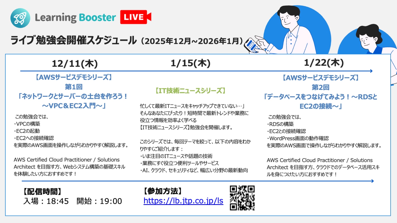 ※ライブ勉強会の内容によっては終了時間が前後する可能性がございます。